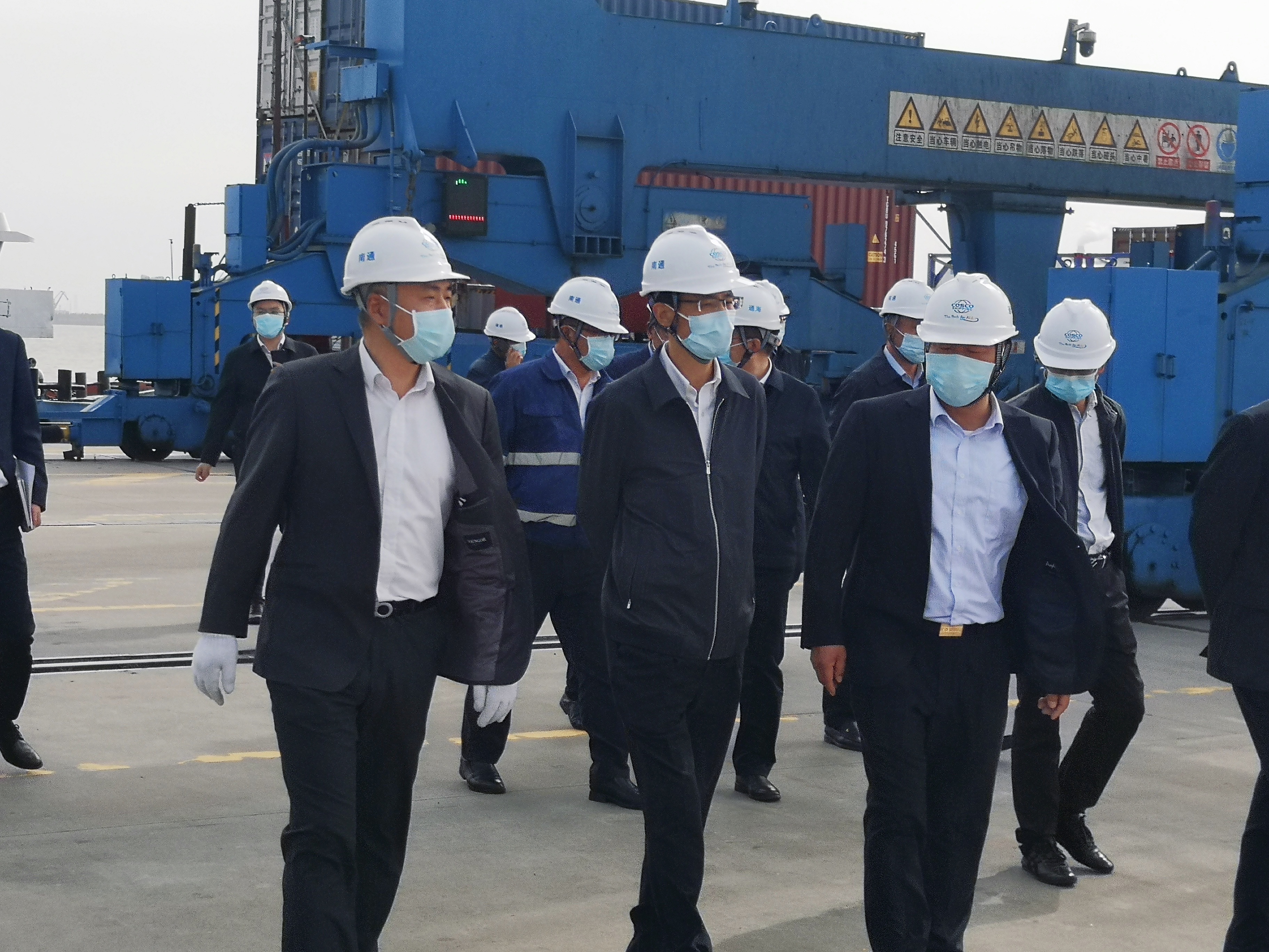 4月27日下午,南通市政府副市長童劍、李建民一行蒞臨南通通海港口有限公司檢查督導疫情防控和安全生產工作。童劍強調,要堅決貫徹落實習近平總書記重要指示精神和中央、省委、市委決策部署,毫不松懈抓好疫情防控和安全生產頭等大事,統籌疫情防控和港口發展,堅定信心,勇于擔當,保鏈強鏈,共克時艱,為全市疫情防控大局、穩定產業鏈供應鏈提供強有力的港口保障。市相關部門領導、南通港(港口)集團和通海港口主要領導參加活動。